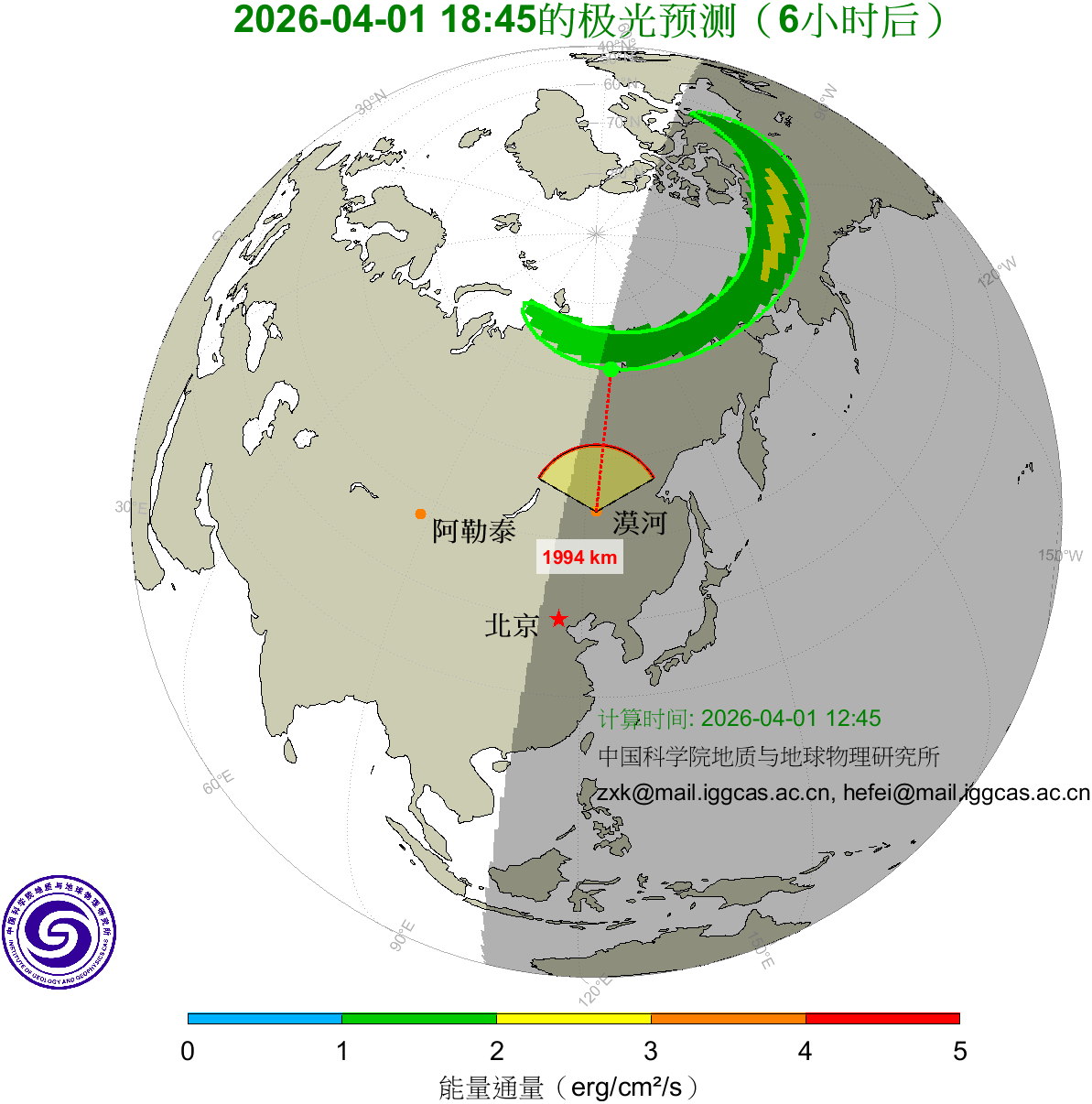 您可通过日期选择器查看指定日期的极光预测结果。点击界面左下角的播放键可启动图片放映功能,在暂停状态下可通过拖动进度条查看不同时刻的预测情况。若所选日期无相关数据,进度条后方将提示"当日无数据"。